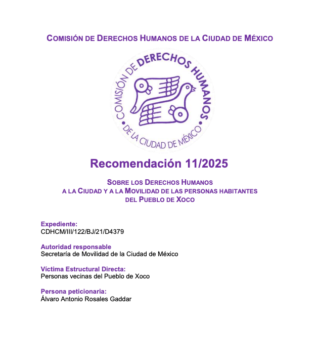 Recomendación 11/2025 de la Comisión de Derechos Humanos de la Ciudad de México: Sobre los derechos humanos a la ciudad y a la movilidad de las personas habitantes del Pueblo de Xoco.